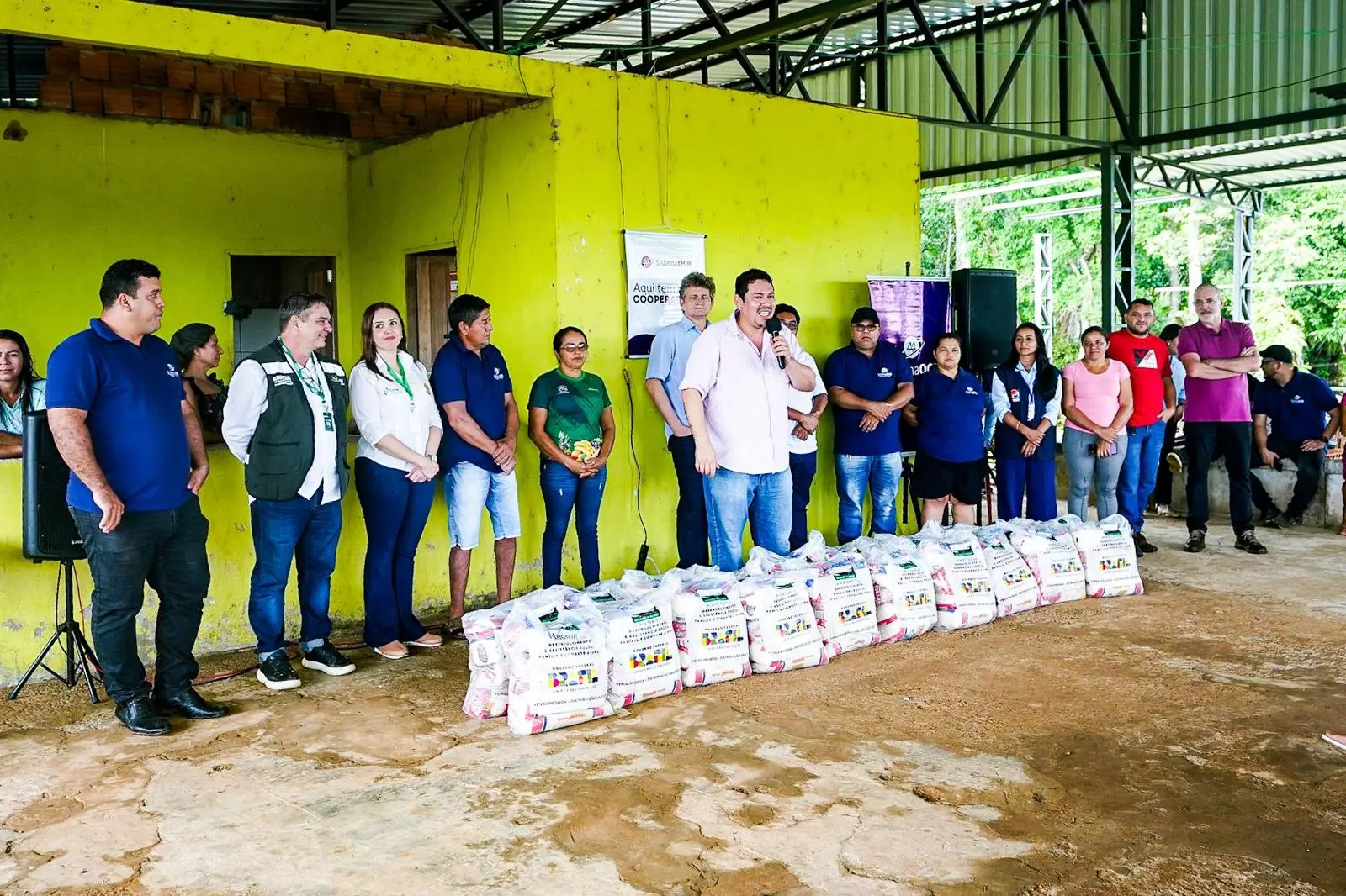 O presidente do Sistema OCB no Acre, Valdemiro Rocha, disse que a entrega das cestas reafirma o compromisso do governo federal com a agricultura familiar e a segurança alimentar. Foto: Ascom