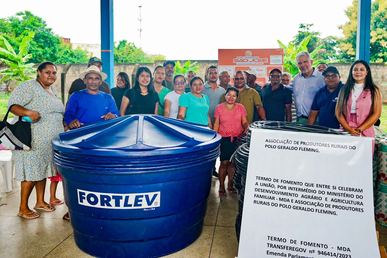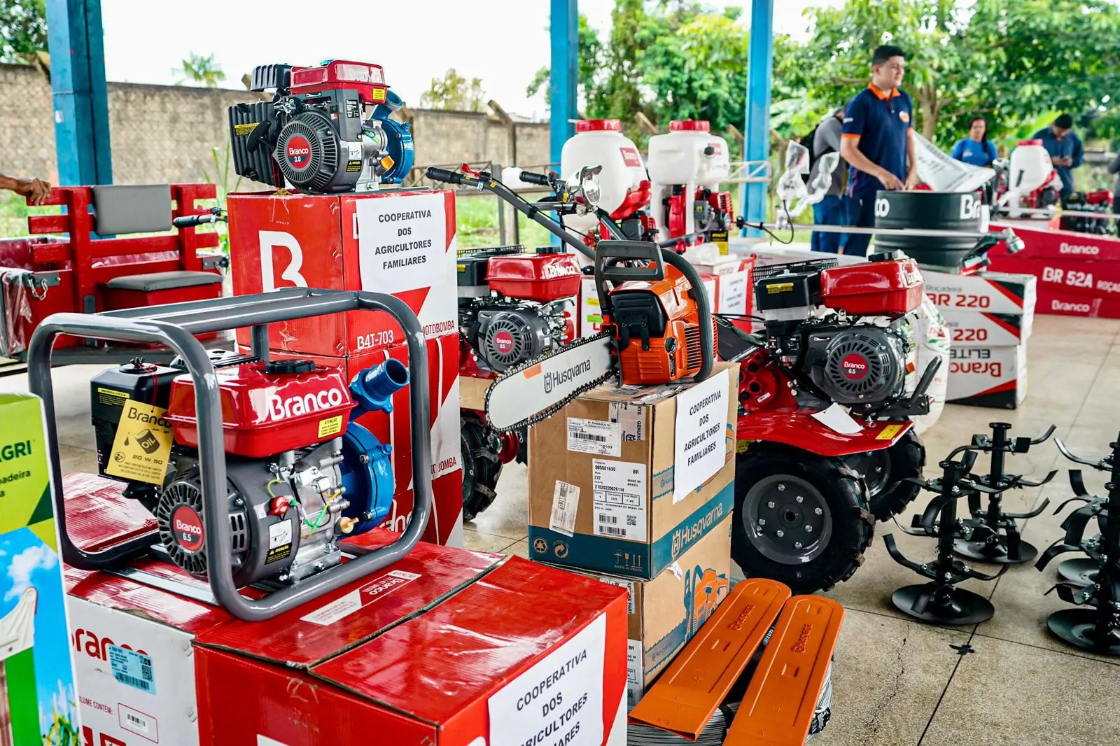 Entre os equipamentos entregues estavam motosserras, motobombas, roçadeiras, motocultivadores, pulverizadores, além de sementes, caixas d’água, fertilizantes, adubos e diversos outros insumos essenciais para a agricultura familiar.