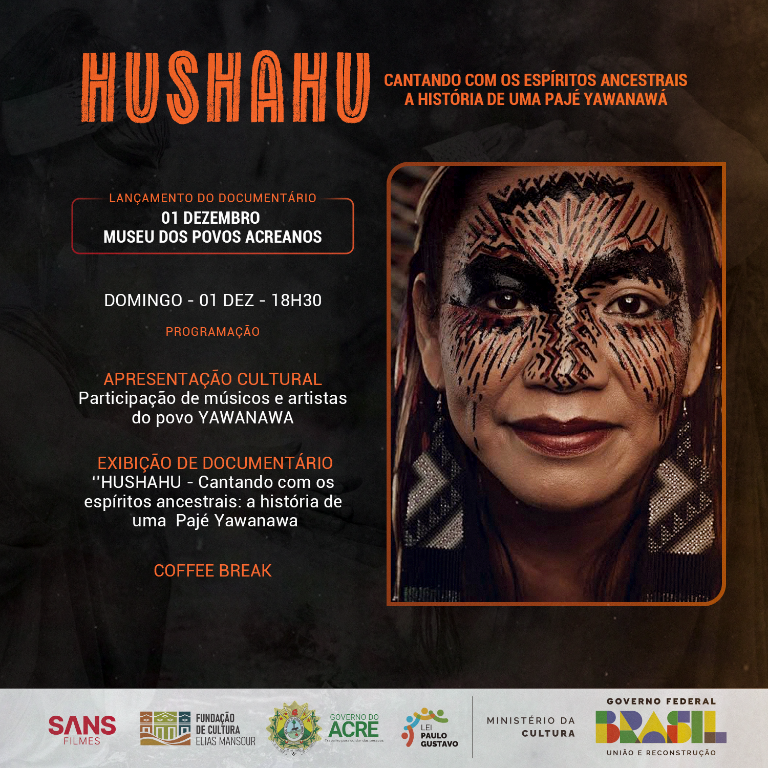 O evento contará com uma apresentação cultural com músicos e artistas do povo Yawanawa, seguida da exibição do documentário “Hushahu: Cantando com os Espíritos Ancestrais”. Após a exibição, haverá um coffee break para os presentes, proporcionando a oportunidade de conversar e refletir sobre a história dessa líder indígena.