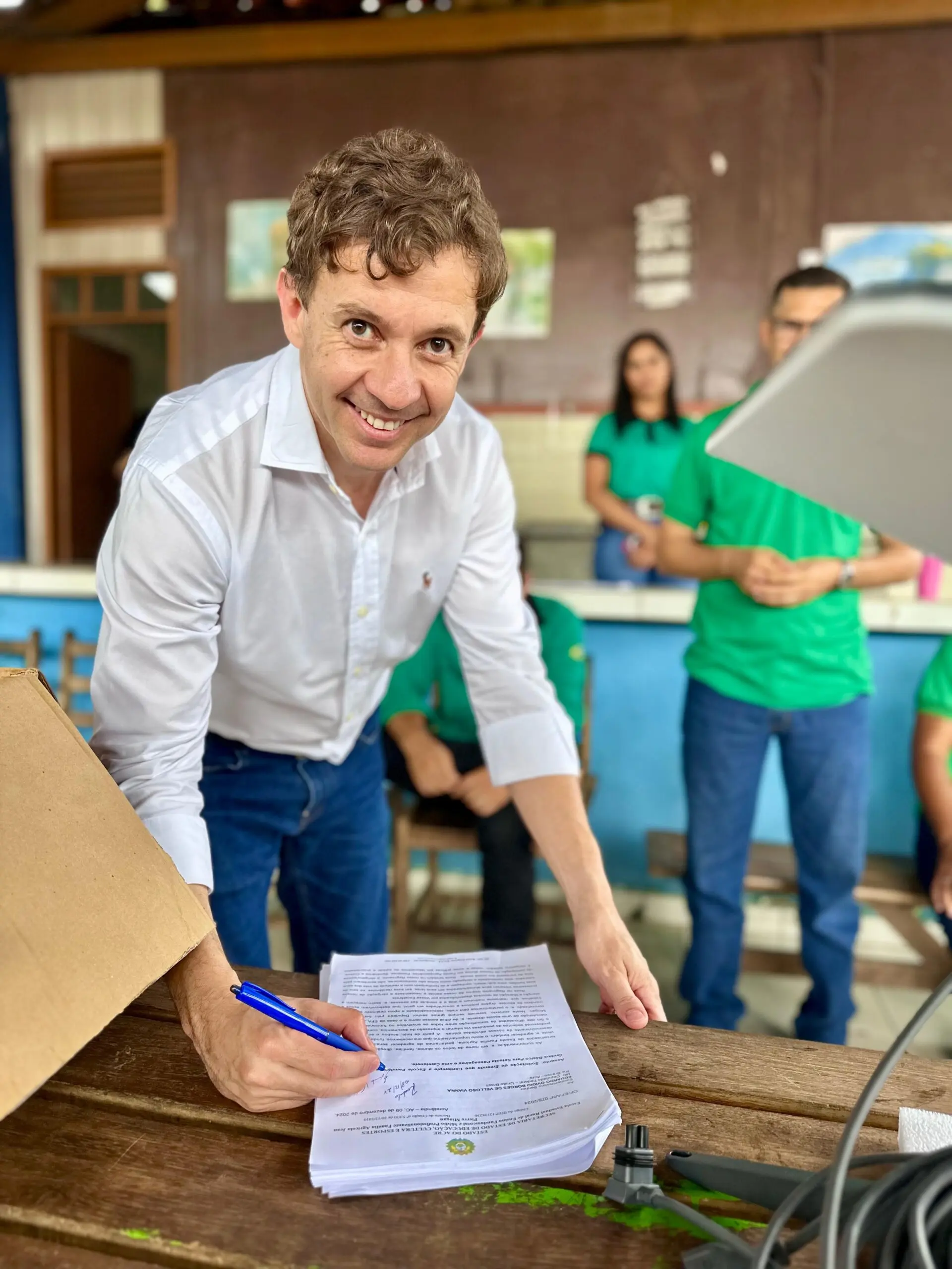 Durante a visita, o parlamentar entregou uma antena de internet Starlink, garantindo conectividade de qualidade para estudantes e professores. A ação atende a uma demanda antiga da comunidade escolar, que enfrentava dificuldades de comunicação devido à ausência de internet funcional na região.