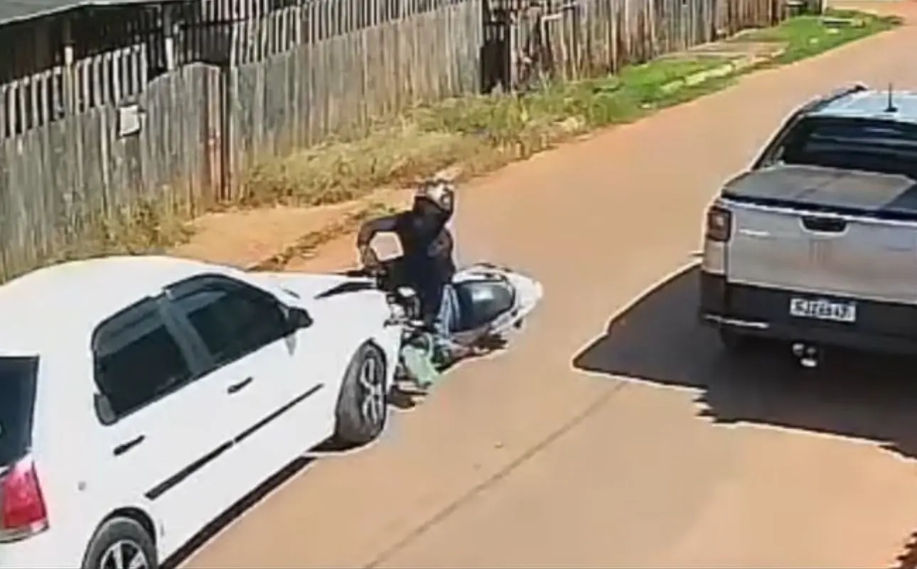 Imagens de câmeras de segurança, divulgadas pela página AcNotícia 68, mostram um acidente de trânsito registrado no município de Senador Guiomard, no interior do Acre, na manhã de segunda-feira (26).