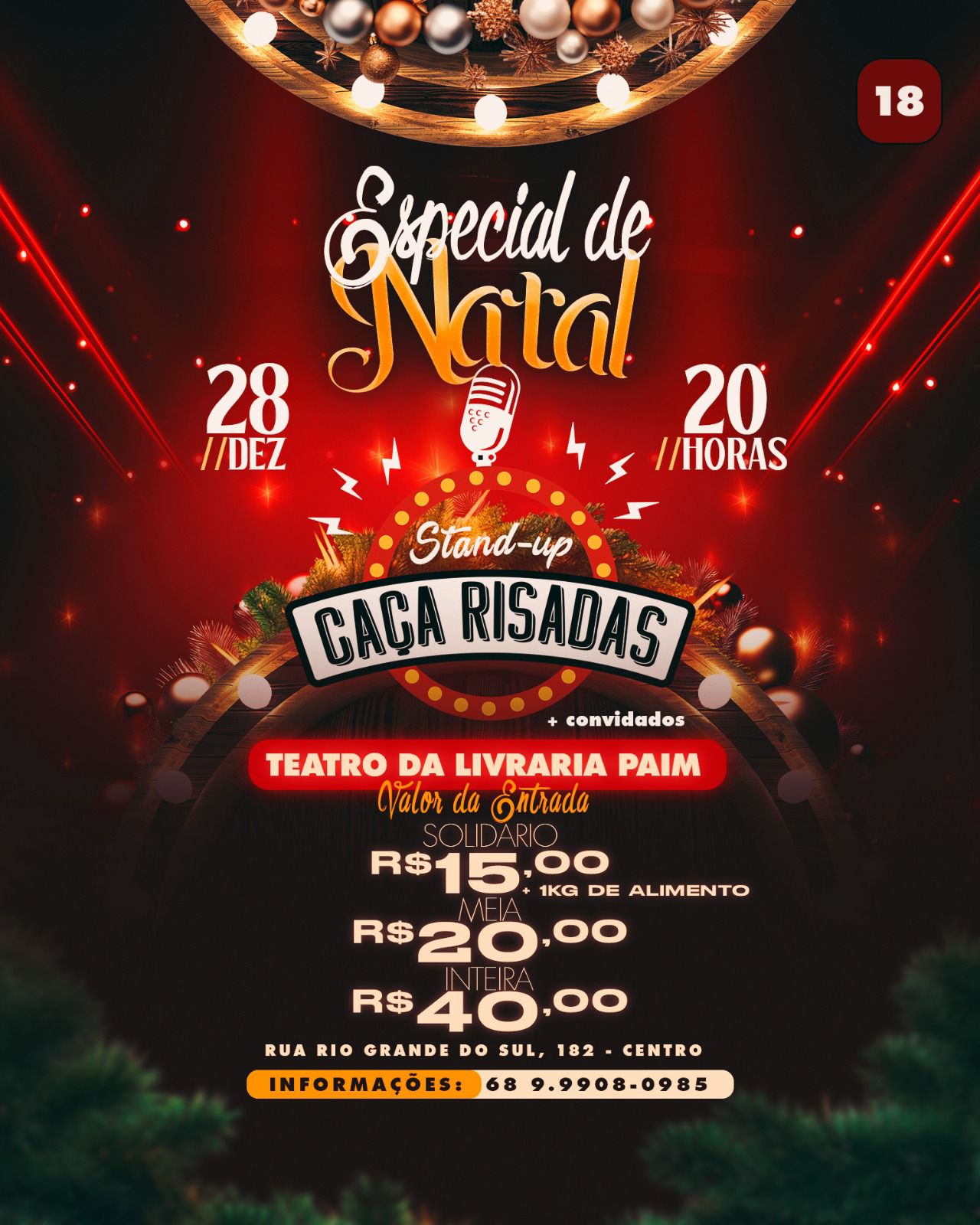 Os eventos temáticos de fim de ano invadem os calendários e os shows de comédia também não ficam de fora. Com isso, o Caça Risadas preparou um evento especial para as festas de fim de ano.
