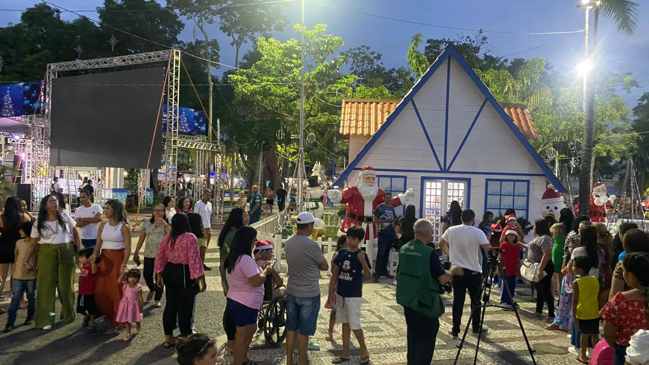 Desde o fim da tarde, famílias começam a ocupar os espaços da praça, aguardando com entusiasmo o início da programação especial, marcada para as 19h. Crianças, jovens e idosos já aproveitam para registrar o momento em fotos. Um dos locais mais prestigiados é a “Casinha do Papai-Noel.