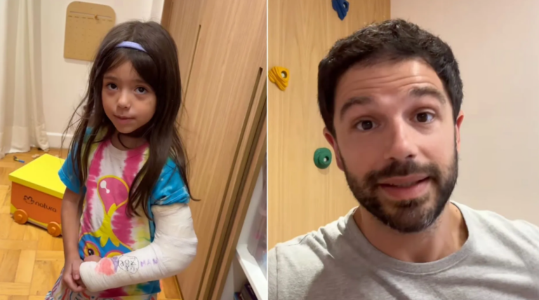 O ator Duda Nagle, 41, usou as redes sociais para explicar o que aconteceu com a filha Zoe, 6, fruto do relacionamento com Sabrina Sato, 43, que apareceu de braço engessado.