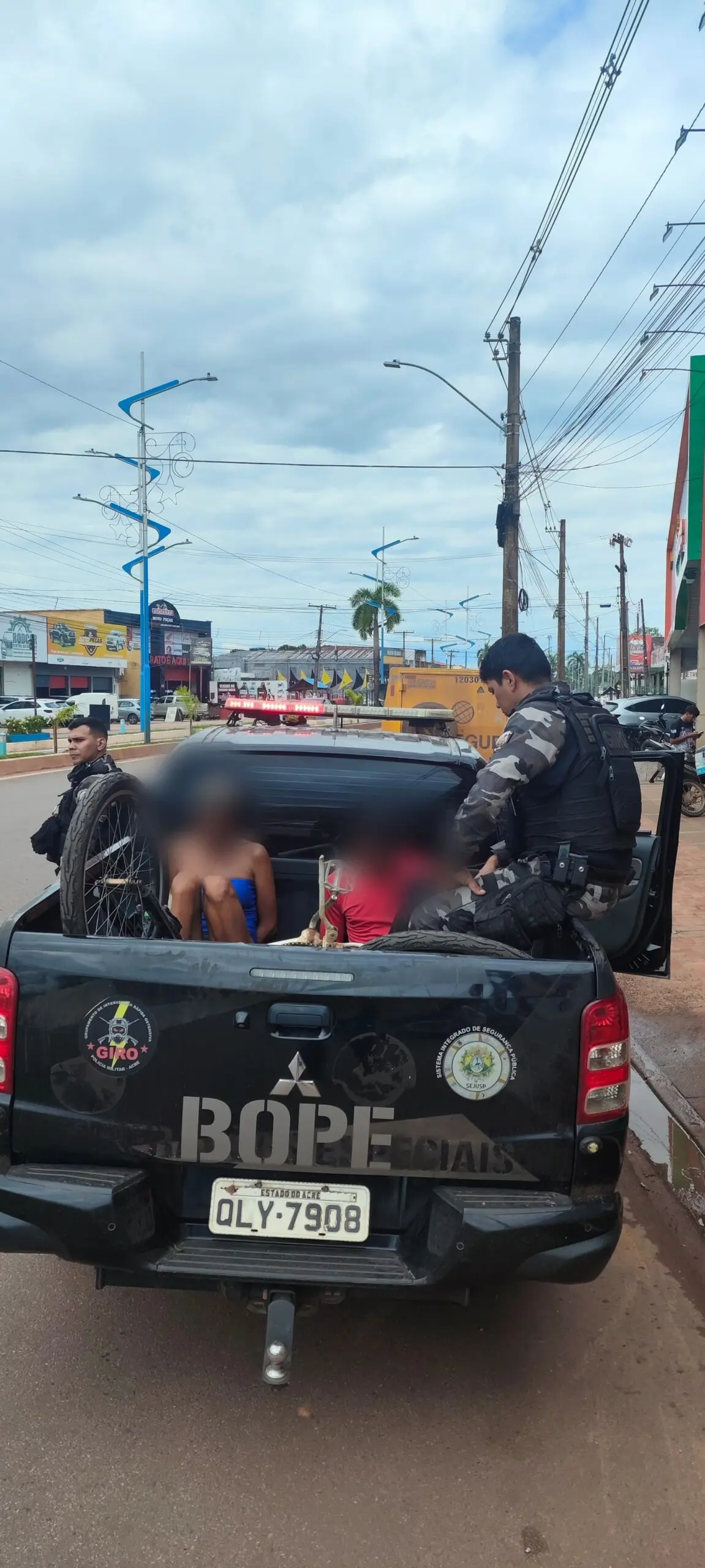 Na tarde desta quinta-feira (26), o Grupamento de Intervenção Rápida Ostensiva (GIRO), da Companhia do Batalhão de Operações Especiais (Bope), prendeu dois suspeitos de roubo no bairro Comara, em Rio Branco. A ação ocorreu após a equipe ser acionada por um cidadão que relatou ter sido vítima de um assalto.