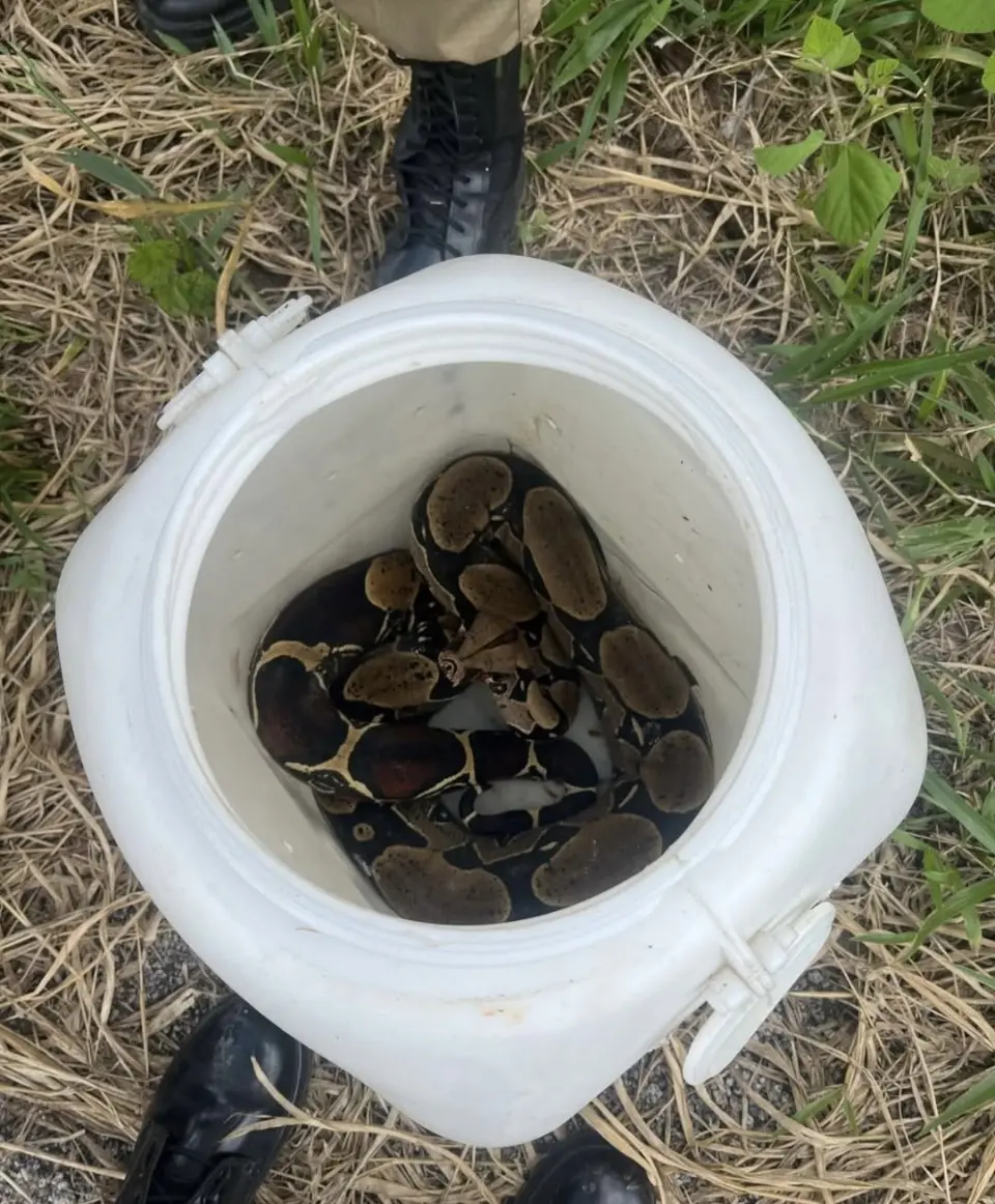 Jiboia de 2 metros é capturada pelos Bombeiros em quintal de casa no interior do Acre. Foto: Reprodução/bombeiros.sena