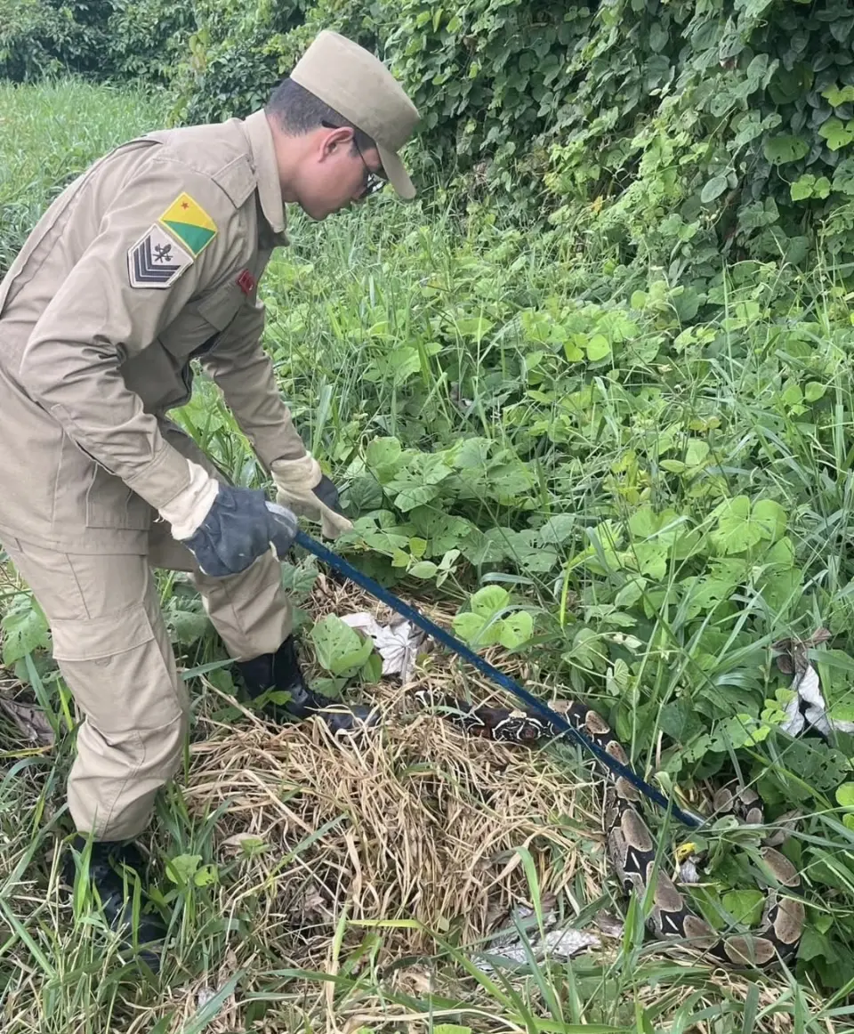 Uma jiboia de aproximadamente 2 metros foi resgatada por uma guarnição de salvamento do Corpo de Bombeiros do município de Sena Madureira, no interior do Acre, na manhã da última sexta-feira (27).