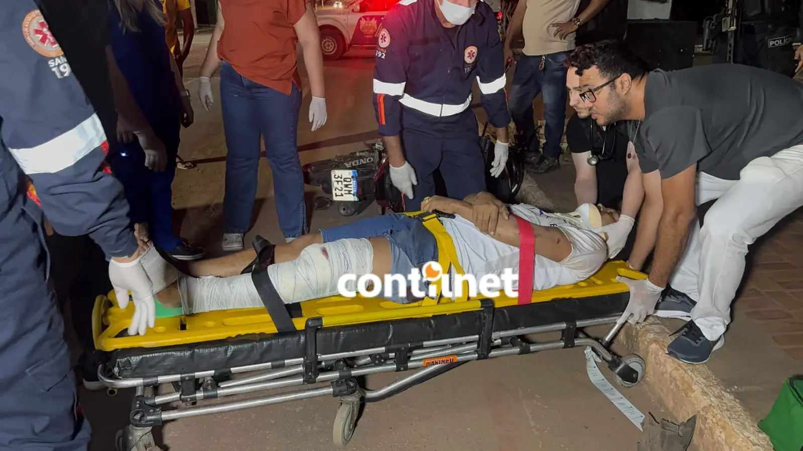Médicos, enfermeiros e técnicos de enfermagem ouviram o estrondo da colisão e foram até o local para prestar os primeiros atendimentos. Em seguida, acionaram o Serviço de Atendimento Móvel de Urgência (Samu), que enviou as ambulâncias de suporte básico (07) e suporte avançado (02) para dar continuidade aos atendimentos. Após serem estabilizados, os dois motociclistas foram encaminhados ao pronto-socorro de Rio Branco. Luiz Jorge permanece em estado grave, enquanto Tharlison está em estado de saúde estável.