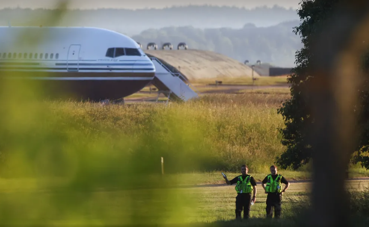 Avião do Ministério do Interior do Reino Unido, após voo de imigrantes para Ruanda ser suspenso por liminar, em junho de 2024/Foto: REUTERS/Hannah McKay