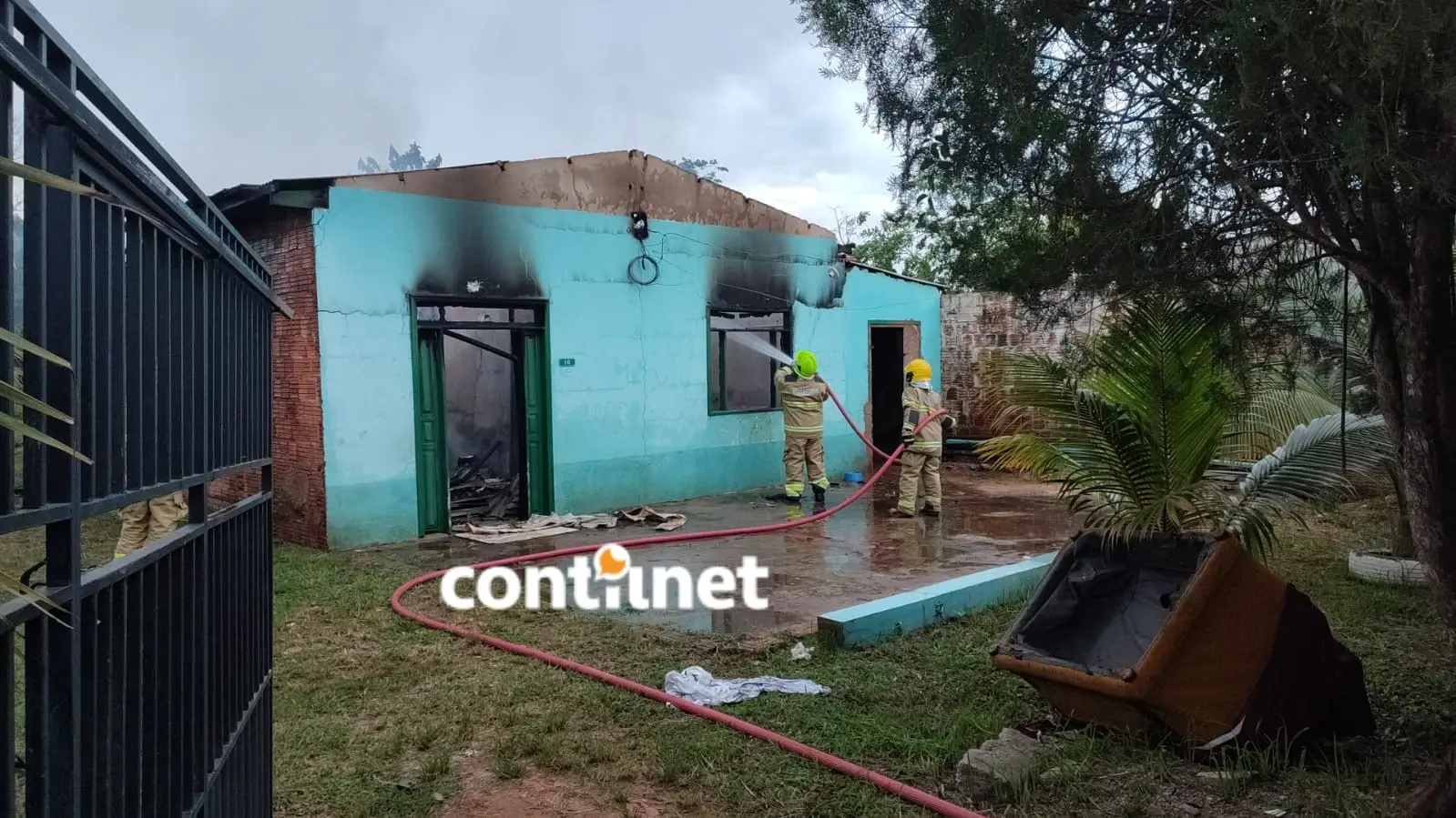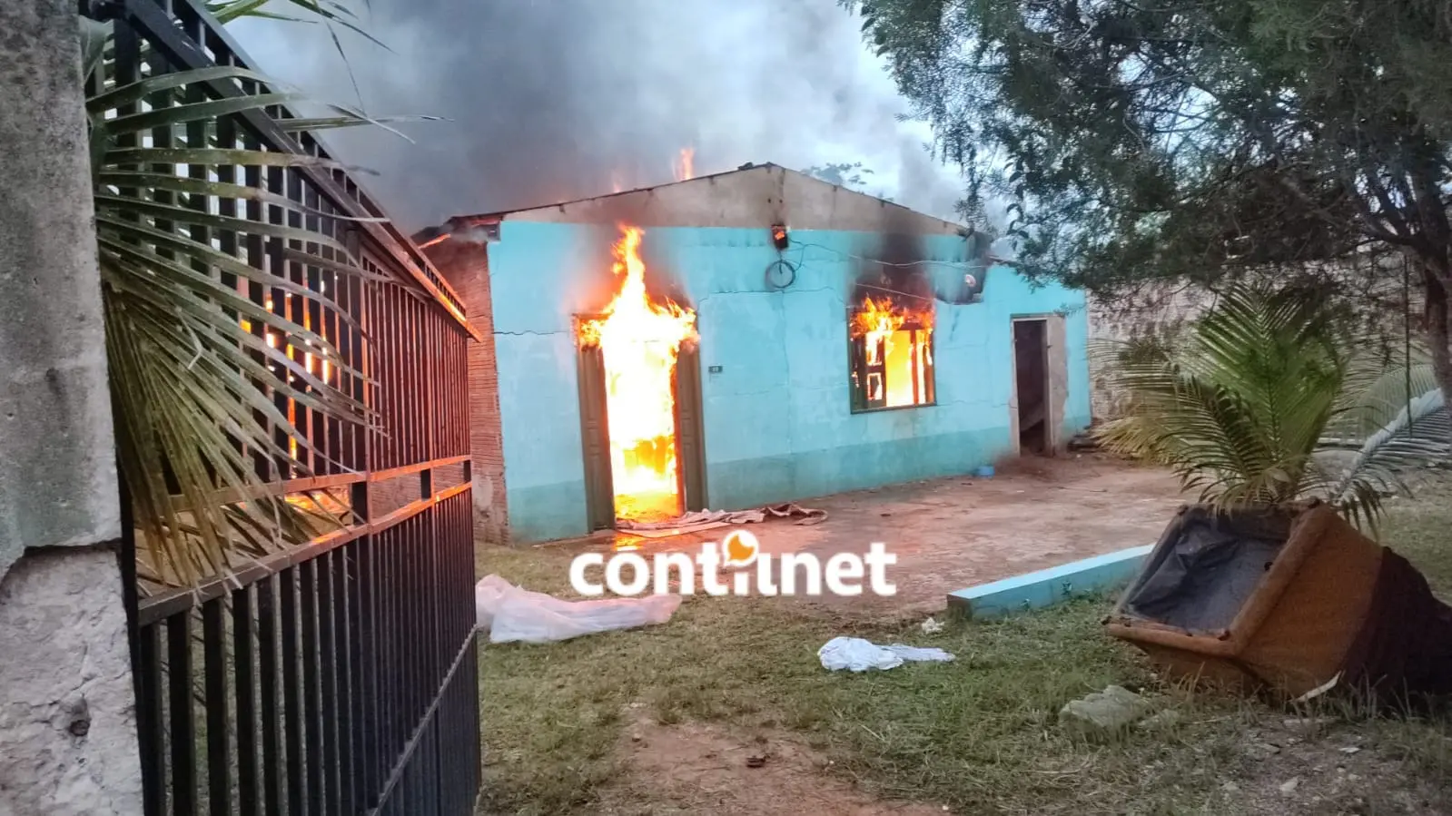 Apesar das dificuldades causadas pelas chamas intensas, vizinhos conseguiram salvar uma televisão e um sofá da sala, mas o restante dos móveis e a casa foram completamente destruídos pelo incêndio.