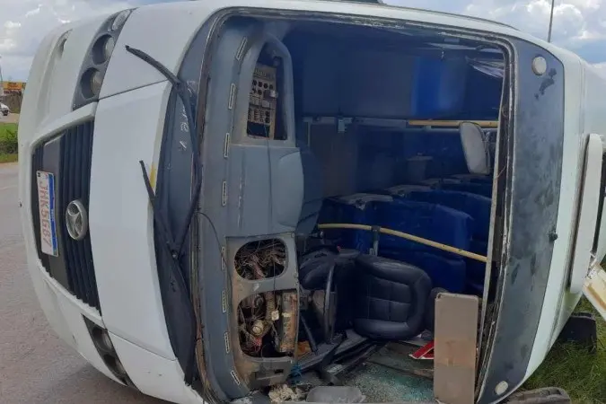 Quatorze pessoas ficaram feridas após um micro-ônibus tombar na BR-070, na manhã deste domingo (1°/12). O acidente ocorreu nas proximidades do Condomínio Privê. Duas passageiras sofreram fraturas expostas e estão em estado grave.