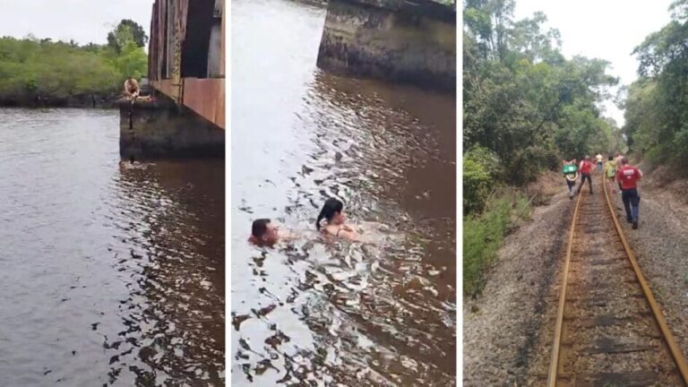 O que era para ser um passeio romântico por pouco não terminou em tragédia em Araquari nesta quarta-feira (25). Uma mulher caiu no rio ao tentar tirar uma selfie em uma ponte. O namorado dela usou o cadarço do próprio tênis para salvar a amada até a chegada do socorro. Os bombeiros tiveram bastante trabalho para conseguir encontrá-la, mas a tiraram da água com vida.
