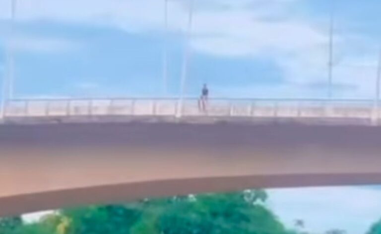 O vídeo feito por uma mulher que não teve o nome identificado foi publicado no site Folha do Acre, e mostra o homem sentado em uma das laterais da ponte, com as pernas penduradas.