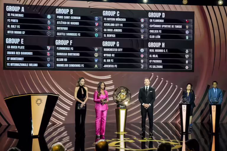 O Palmeiras está no Grupo A, ao lado de Porto, Al-Ahly e Inter Miami. O Botafogo integra o Grupo B, junto com PSG, Atlético de Madri e Seattle Sounders. O Flamengo compõe o Grupo D, com Espérance, Chelsea e León. O Fluminense, por sua vez, está no Grupo F, junto com Borussia Dortmund, Ulsan e Mamelodi Sundowns.
