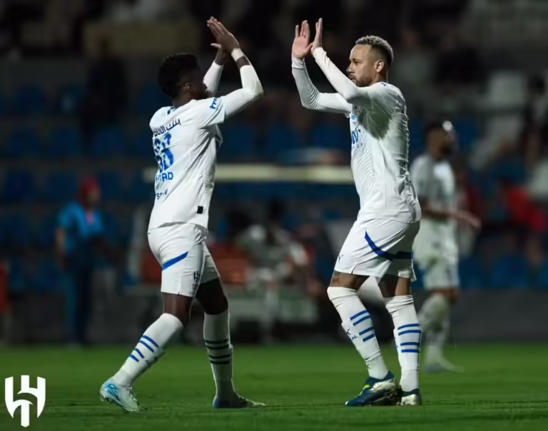 Neymar comemora gol marcado em Al-Hilal x Al-Fayha — Foto: Divulgação