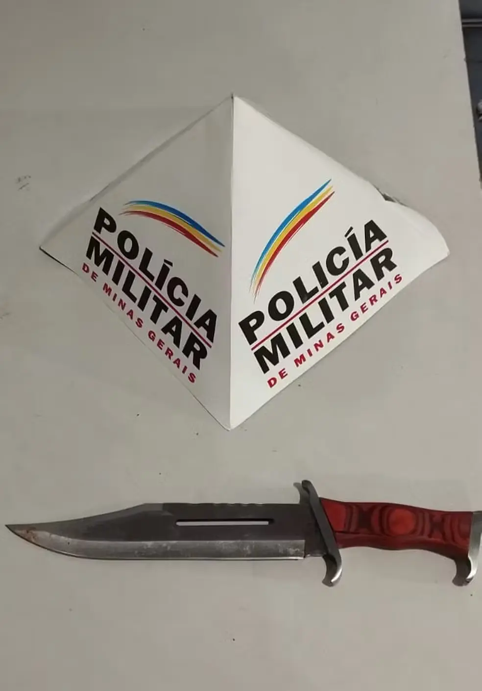 Faca utilizada no crime foi apreendida — Foto: Polícia Militar/Divulgação