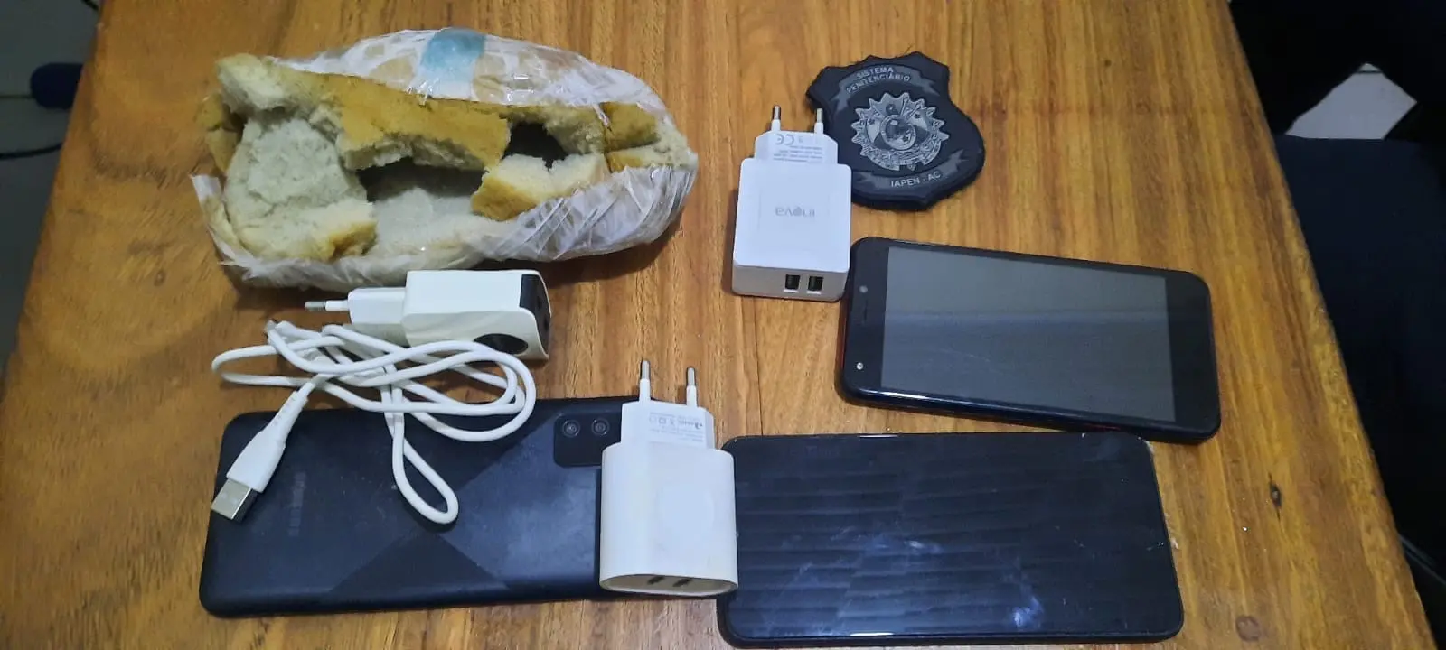 Polícia Penal apreende celulares arremessados em presídio no interior do Acre. Foto: Reprodução
