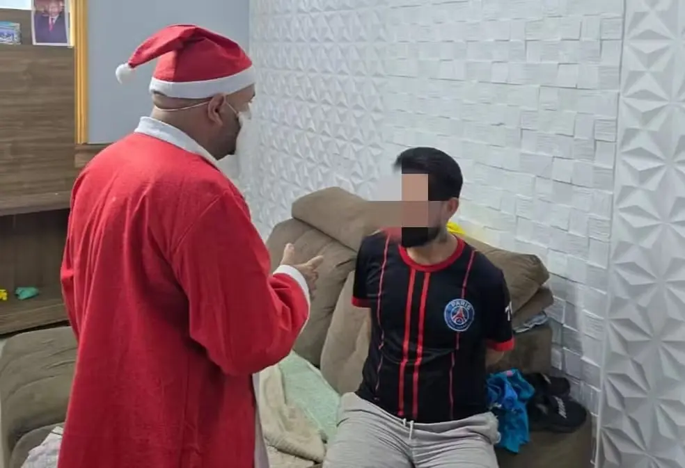 “É algo até comum no meio policial. A gente chama de história de cobertura, para investigar e identificar quem é o alvo, quem é a pessoa, e onde está o local. Como está nesse período natalino, a história de cobertura do pessoal que foi identificar o nosso alvo foi um dos policiais se vestir de Papai Noel para conseguir se aproximar sem ser identificado como policial. Quando ele teve certeza de que era o alvo, ele acionou os colegas para cumprir o mandado de prisão”, disse o delegado que comandou a operação.