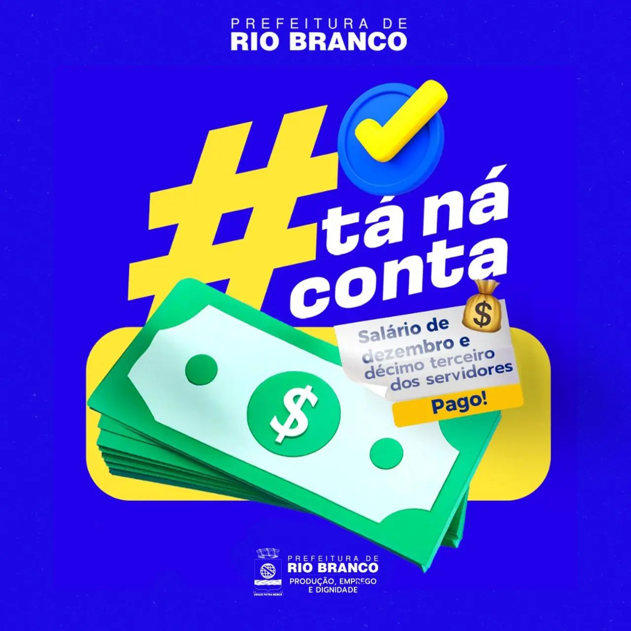 Cerca de R$ 110 milhões foi o valor pago pela prefeitura de Rio Branco nesta sexta-feira (20), aos servidores públicos municipais. O montante é referente aos salários do mês de dezembro, 13º salário e verbas rescisórias de 9 mil servidores entre ativos (efetivos, temporários, comissionados) e inativos (aposentados e pensionistas).