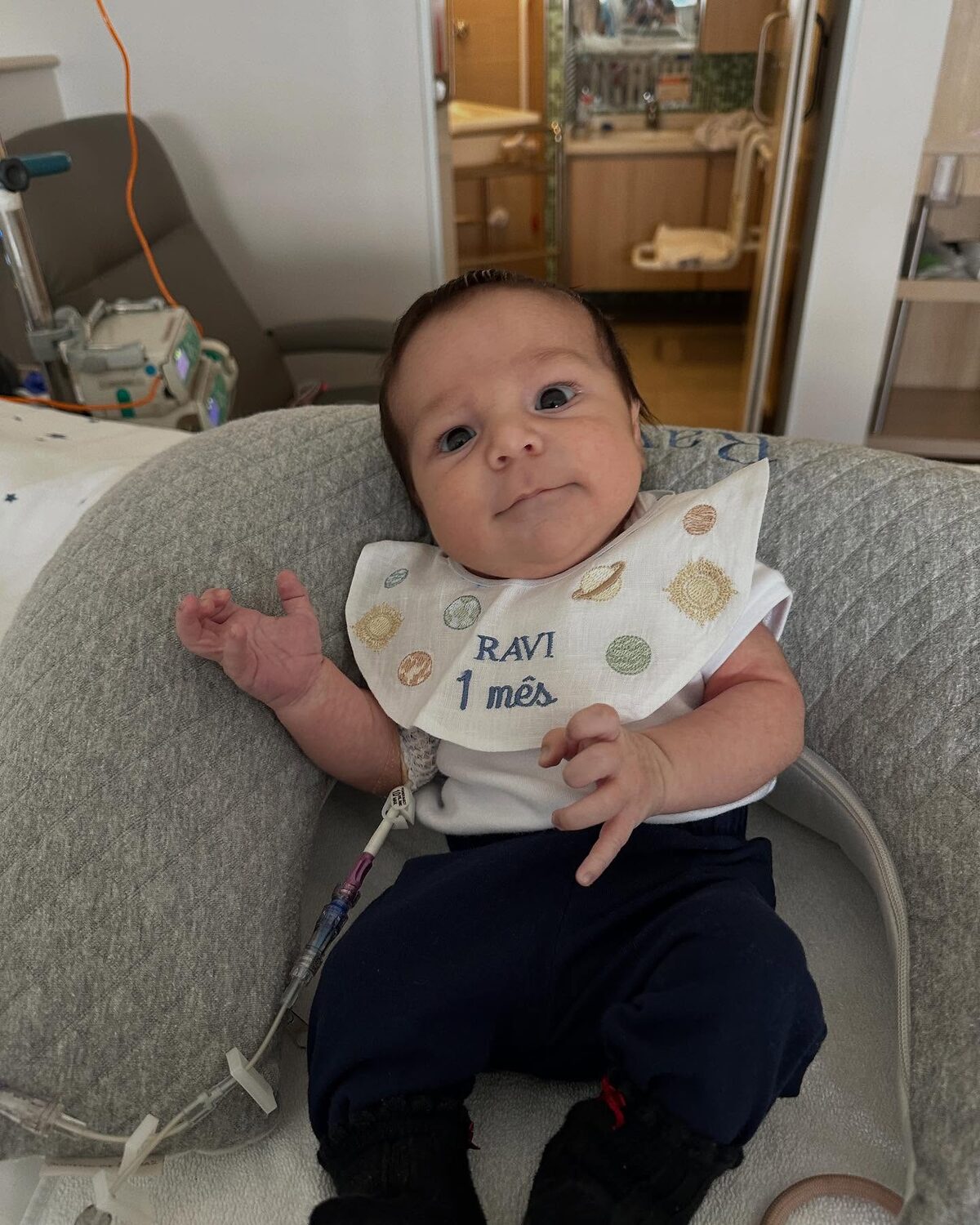 O pequeno nasceu no último dia 11 e completou 1 mês de vida ainda no hospital. Além de Ravi, Vih Tube e Eliezer também são pais de Lua, de um ano.