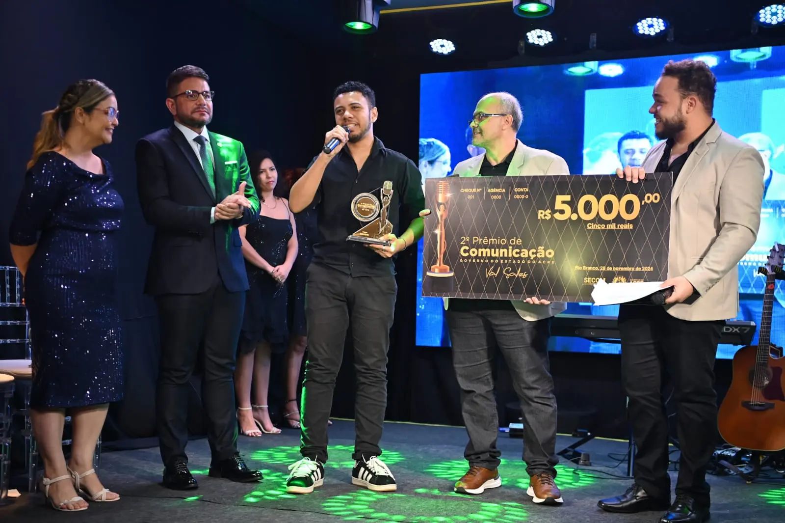 Quem se destacou na categoria estudante e levou o prêmio de R$ 5 mil, em primeiro lugar, foi o jornalista Victor Manoel, com a reportagem “No dia nacional contra a homofobia, conheça o 1º Observatório de Políticas Públicas LGBTQIA+ do Acre”.