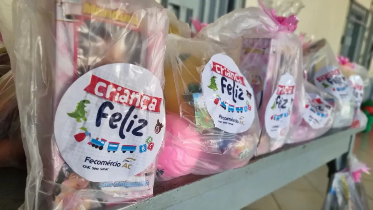 Como parte do projeto “Criança Feliz”, o Sistema Fecomércio-Sesc-Senac/AC entregou, na manhã da sexta-feira, 27, cerca de 290 brinquedos a crianças atendidas pelas Pastorais Sociais da Paróquia Divino Espírito Santo, no bairro Conquista.