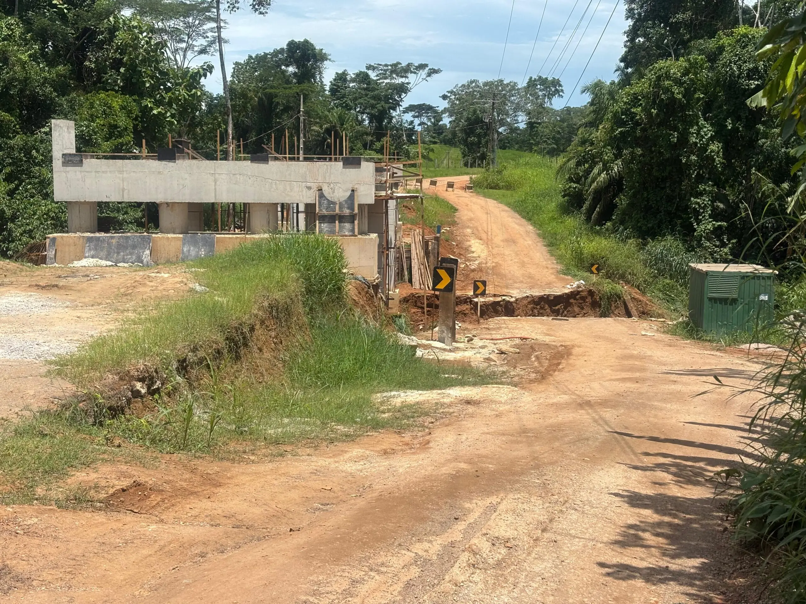 No local, está sendo erguida uma ponte com estrutura mista de concreto armado e vigas metálicas sobre o igarapé Redenção. A obra, que está orçada em mais de R$ 3,6 milhões, teve início em julho de 2024.