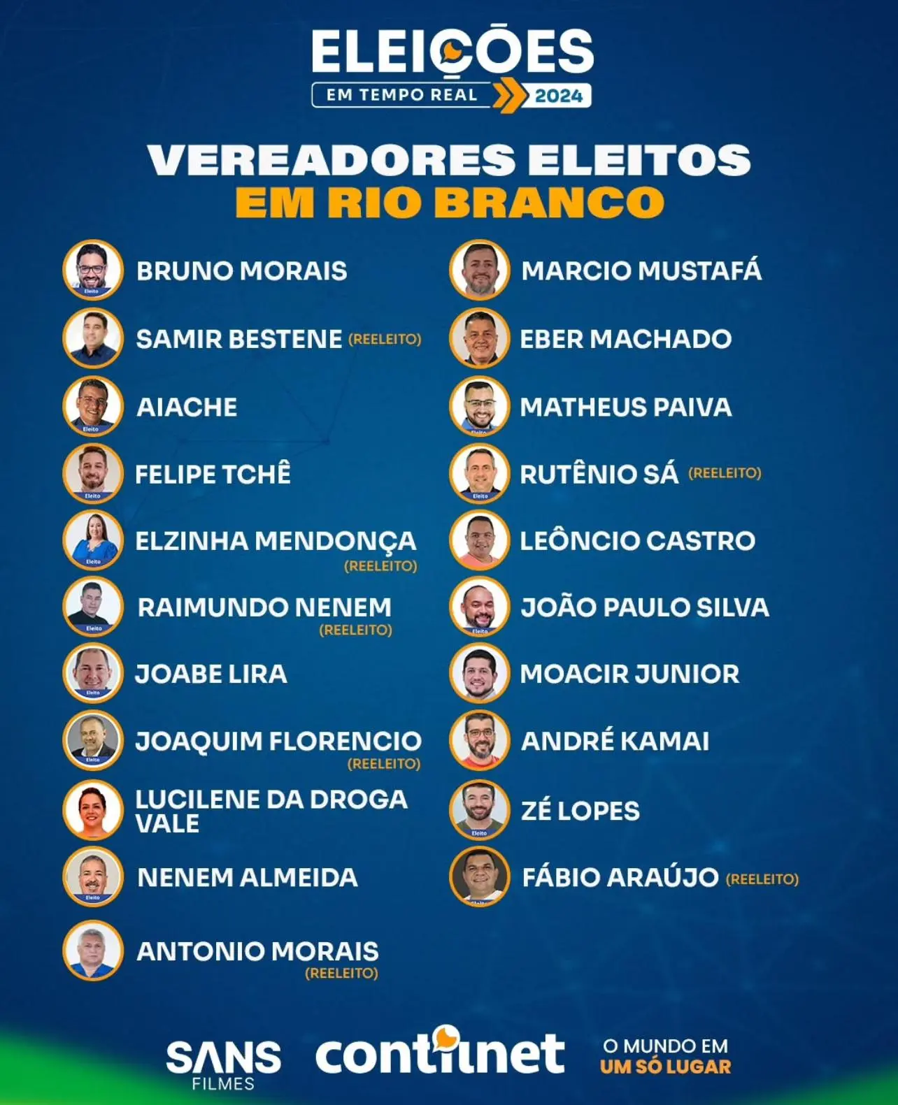O ano de 2024 contou com o processo eleitoral municipal, em que tivemos a reeleição do prefeito Tião Bocalom, assim como a reeleição de de sete candidatos a vereadores, e outros 14 novos nomes para ocuparem as cadeiras.