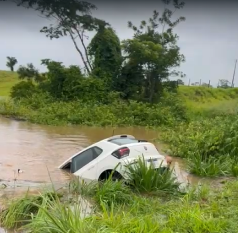 O veículo ficou parcialmente submerso, no entanto, não houve registro de feridos, ocasionando apenas danos materiais.