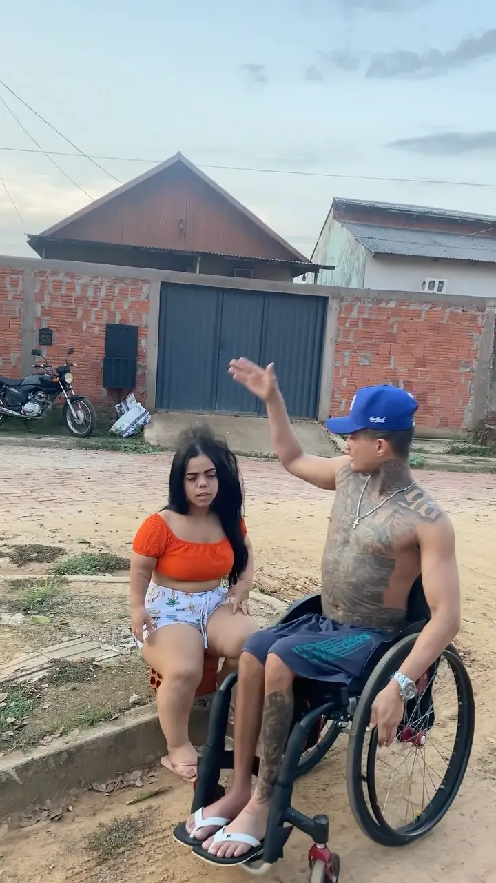 No vídeo, o cadeirante passa e dá um leve tapa na cabeça da outra influenciadora, que tem nanismo. Irritada com a situação, ela arremessa um tijolo no homem, que é atingido por uma pequena pedrinha, fazendo uma brincadeira com a altura da colega.