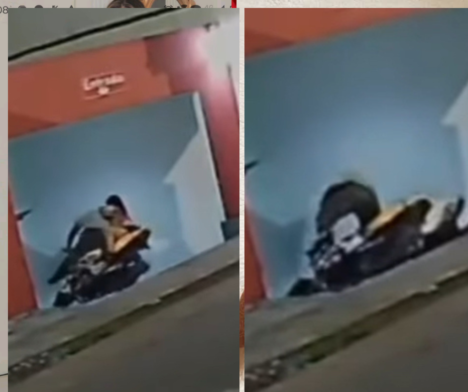 O registro feito por câmeras de circuito interno, mostra o momento que um casal chega em uma moto, cheio de amor, em uma pousada em Manaus. Porém ao entrar no local, por meio da rampa de acesso, a dupla se desequilibra e a garupa cai da moto na ladeira.