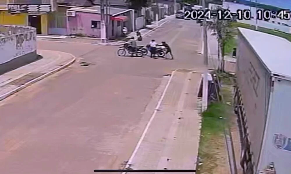 Imagens de câmeras de segurança registraram o momento em que dois homens chegaram ao local em outra motocicleta. Um deles desceu rapidamente e abordou a vítima, aparentando estar armado. A mulher levantou as mãos e se afastou, enquanto o assaltante fugiu na motocicleta roubada, acompanhado pelo comparsa.