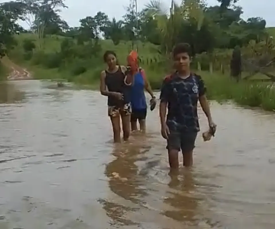 Desse modo, findou inviabilizando o tráfego de carros e motocicletas. Inclusive, impediu a passagem do carro que faz o transporte dos alunos. Tal igarapé fica localizado nas proximidades da propriedade do senhor Demar e da dona Marina.