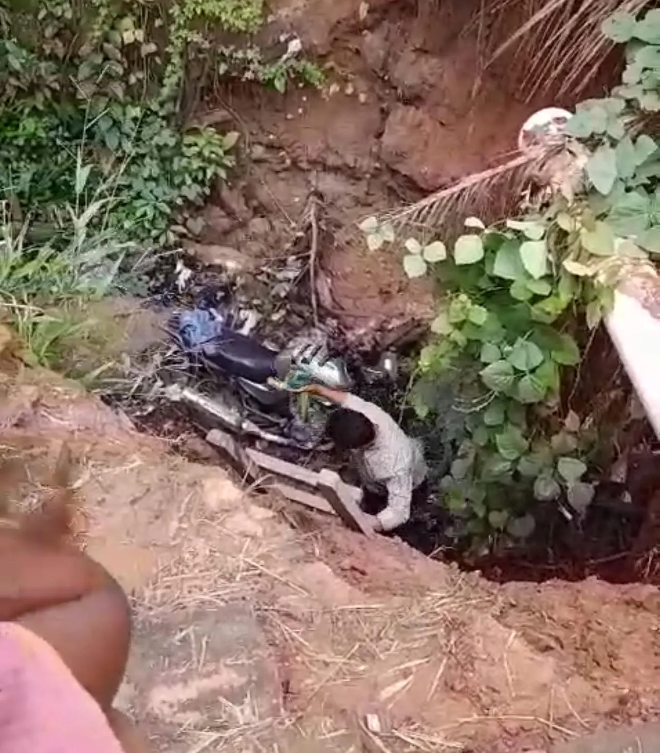 Segundo testemunhas, a vítima conseguiu escapar porque se segurou em uma parte superior do barranco e não chegou a cair sobre o boieiro que tem no local.