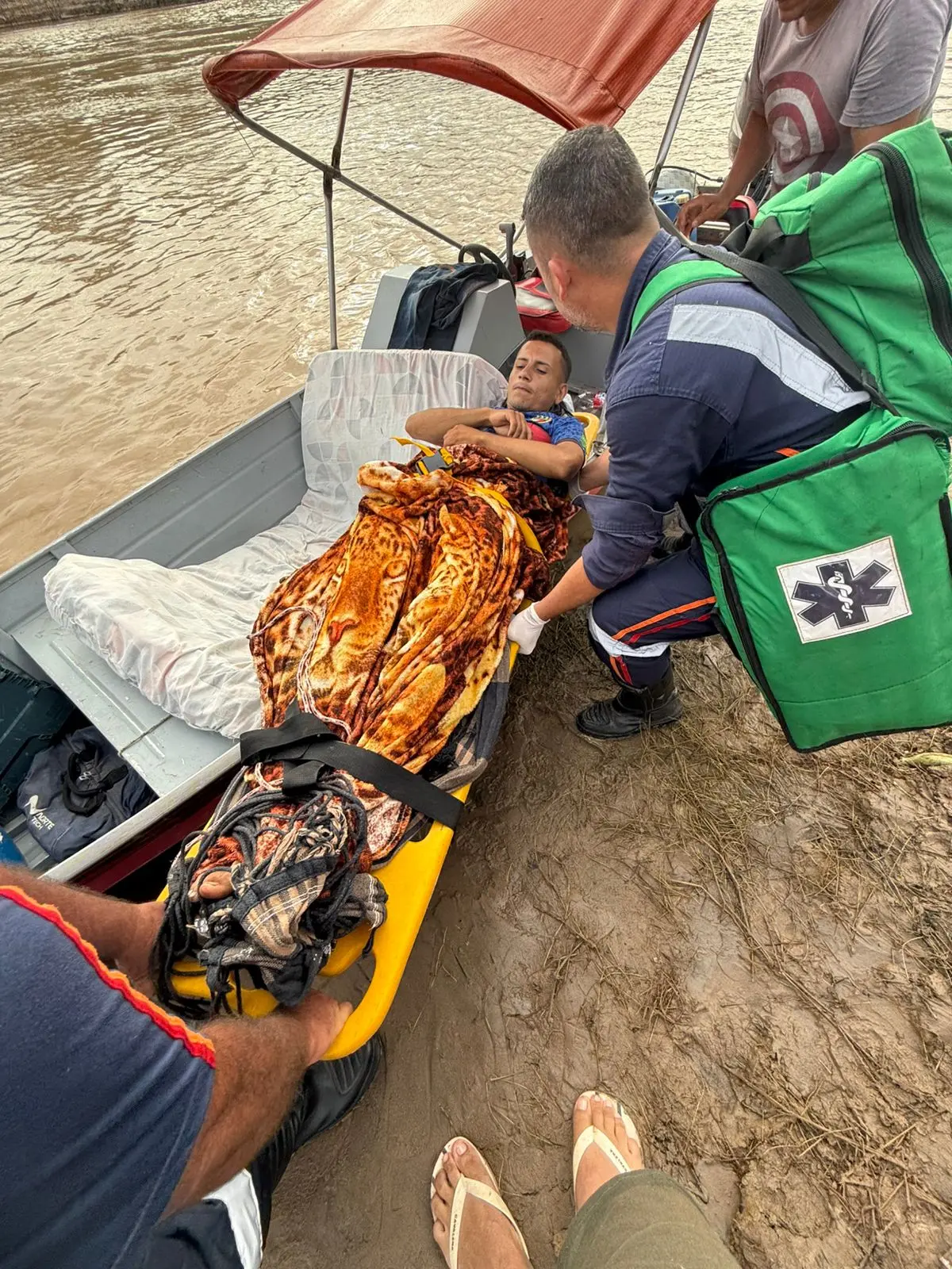 Evailson Assunção, ferido na coxa, foi transportado por dentro da mata até a margem do rio purus e, em seguida, encaminhado para o pronto socorro do hospital João Câncio Fernandes, onde recebeu atendimento médico e está em fase de recuperação.