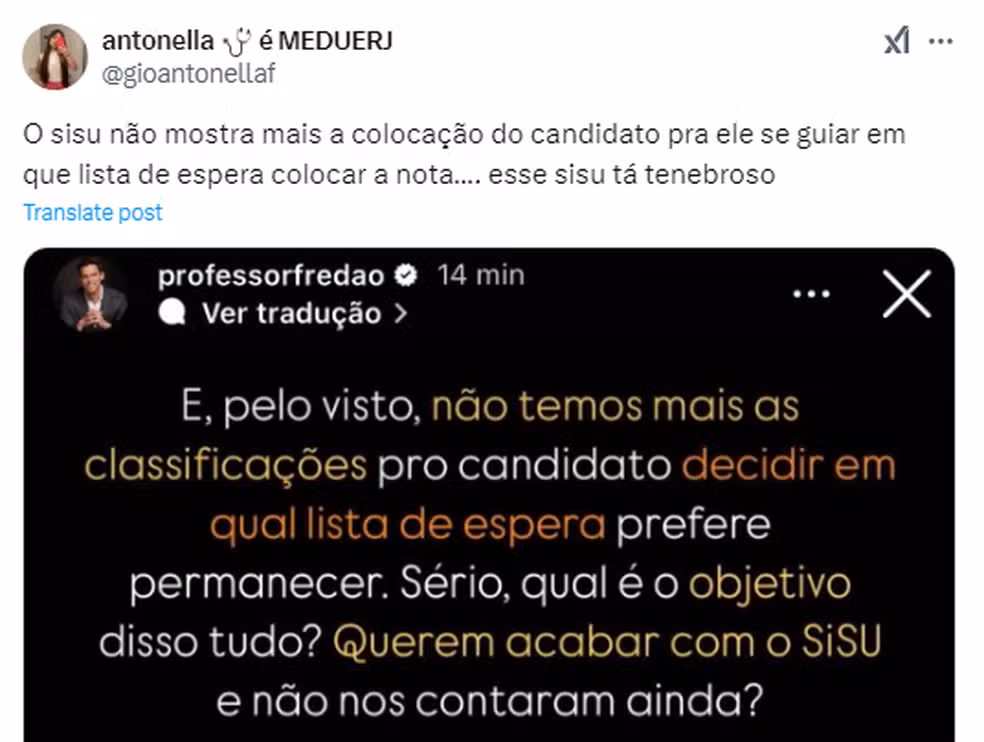 Os candidatos do Sistema de Seleção Unificada (Sisu) 2025 já passaram o domingo (26) inteiro no aguardo dos resultados do processo seletivo. E nesta segunda-feira (27), quando os nomes dos aprovados foram divulgados após um dia de atraso, outro problema passou a atrapalhar os alunos: a página do Ministério da Educação (MEC) não mostrou as classificações nas listas de espera.