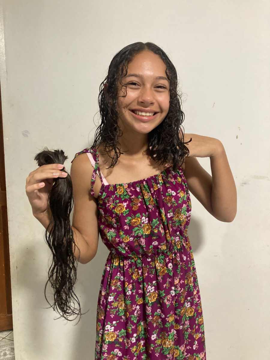 Danielly, de 12 anos, decidiu que queria cortar os cabelos e doar para outras crianças que precisassem de suas mechas durante o combate contra algum câncer, como forma de apoiá-las na batalha contra a mesma doença que vitimou sua tia.
