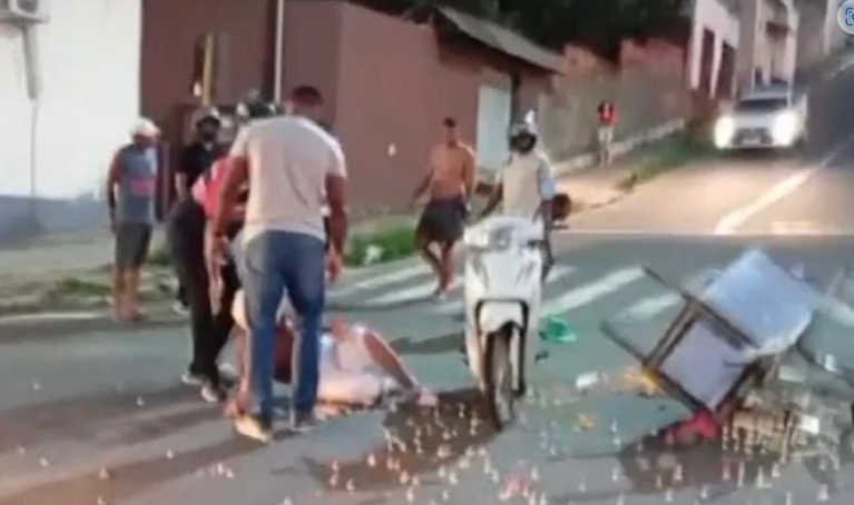 Um vendedor de pipoca, identificado como Francisco Souza Costa, teve o carrinho destruído ao ser atingido por uma motociclista na noite do domingo (19). O acidente aconteceu na Avenida Lauro Muller, em Cruzeiro do Sul.