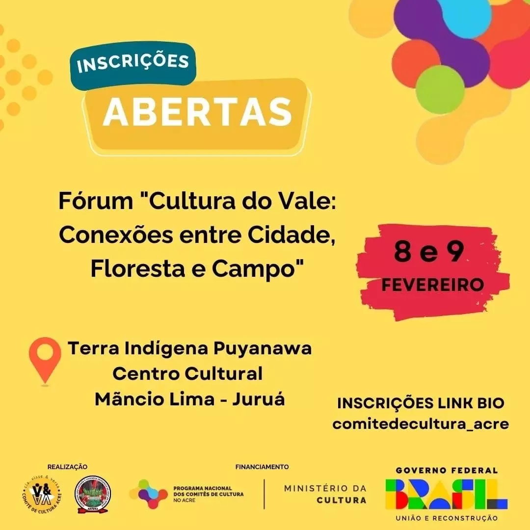 Com o tema “Unindo vozes e territórios pela cultura e preservação no Juruá”, o fórum reunirá representantes das comunidades indígenas, urbanas e rurais, fortalecendo os laços entre diferentes territórios e promovendo um espaço de troca de experiências.