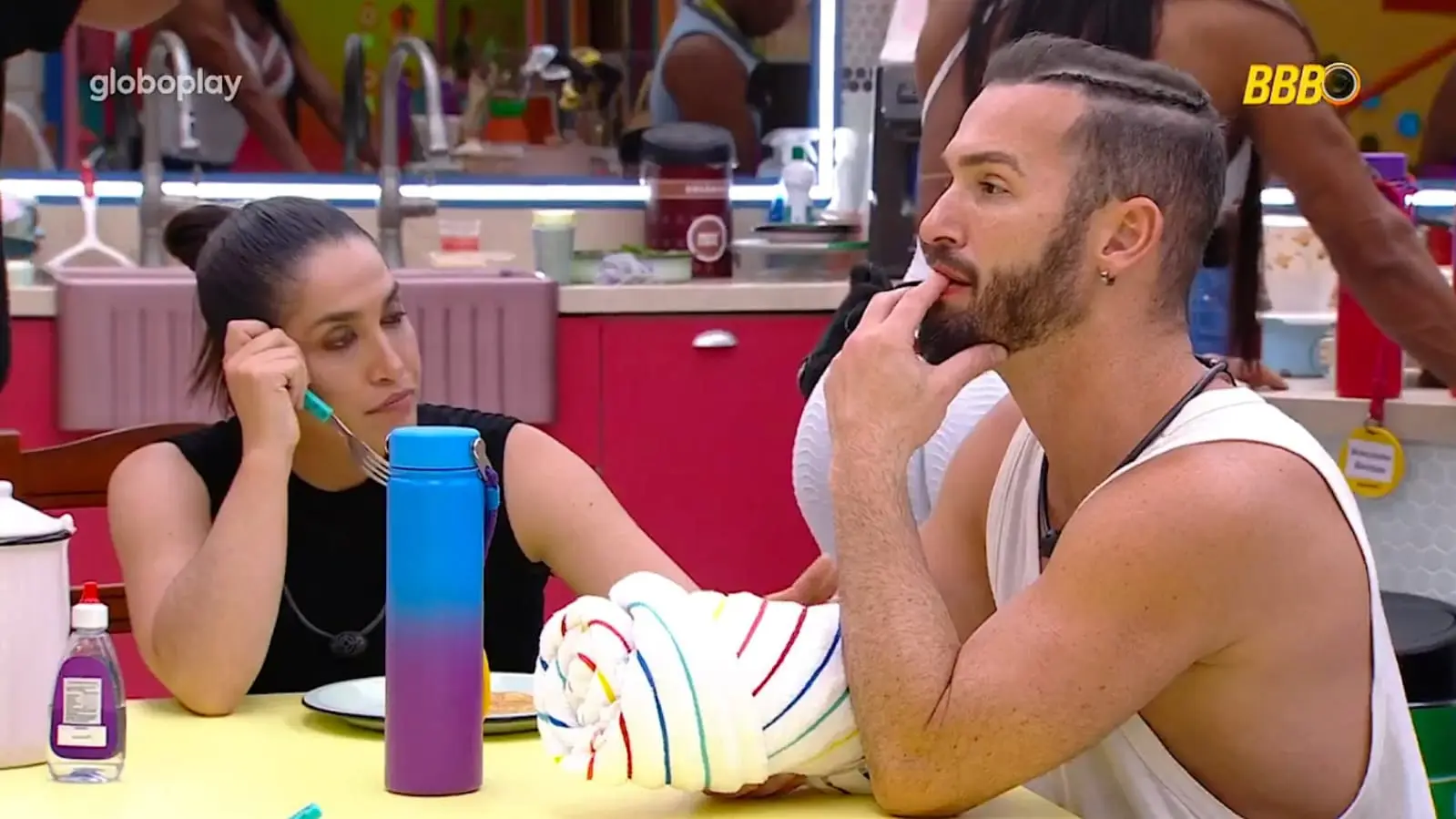 Dani percebe que Diego ficou pensativo após conferir o Queridômetro do dia. Preocupada, ela tenta aconselhar o irmão.