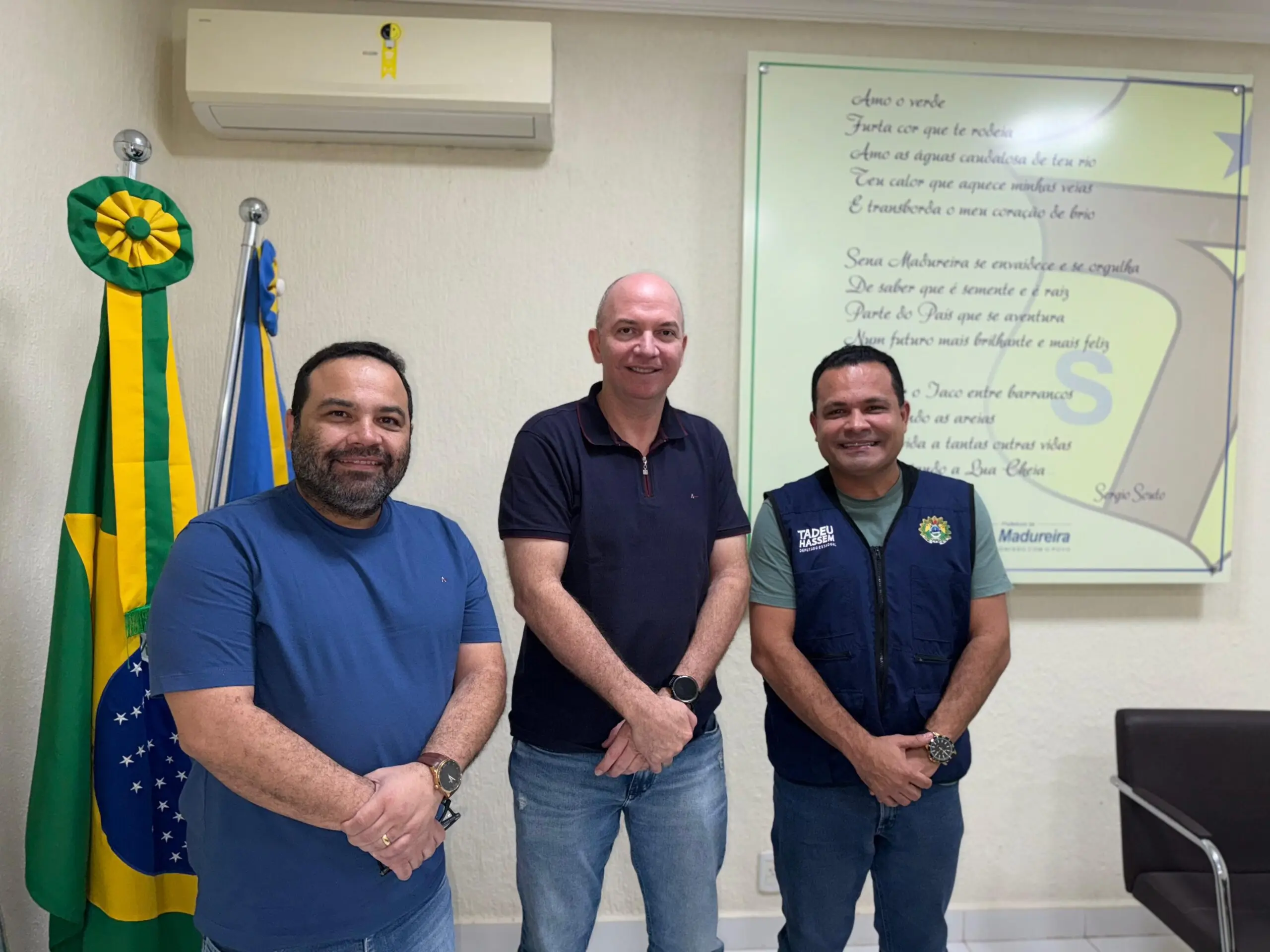 O deputado estadual e presidente da Comissão de Orçamento e Finanças da Assembleia Legislativa do Acre (COF/Aleac), Tadeu Hassem, aproveita o recesso dos trabalhos na Casa do Povo para ampliar as ações do mandato e alcançar mais acreanos. Nesta terça-feira (14), Tadeu visitou o prefeito de Sena Madureira, Gerlen Diniz, para ficar a par das necessidades do município e saber como pode melhorar a vida dos moradores locais.