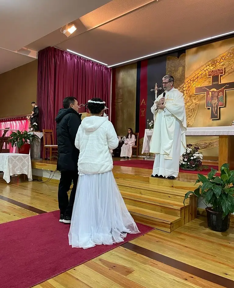 A ex-prefeita, Maria Lucinéia, compartilhou a experiência em suas redes sociais, onde fez uma declaração emocionada ao marido. Na ocasião ela relembrou do casamento aos 17 anos e expressou a gratidão por poder reafirmar esse compromisso em um lugar tão distante, em uma pequena igreja na Europa.