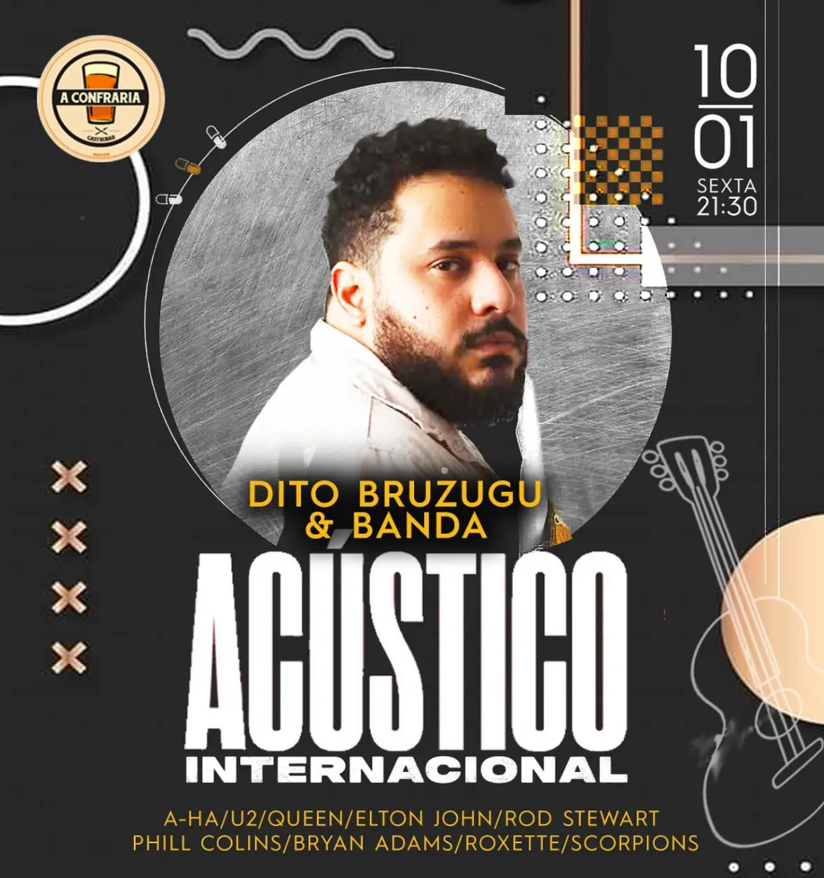 Na sexta, 10, no Confraria, Dito Bruzugu realizou show de despedida dos palcos em nossa Capital de Dito Bruzugu. Com uma super banda com violões, piano, violino e tudo que merecemos, Dito apresentou um show de baladas rock internacionais acústicas dos anos 80 e 90 de A-HA, U2, Queen, Elton John, Rod Stewart, Phill Colins, Bryan Adams, Roxette, Scorpions, Bon Jovi e muito mais em versões acústicas. Foi sensacional!