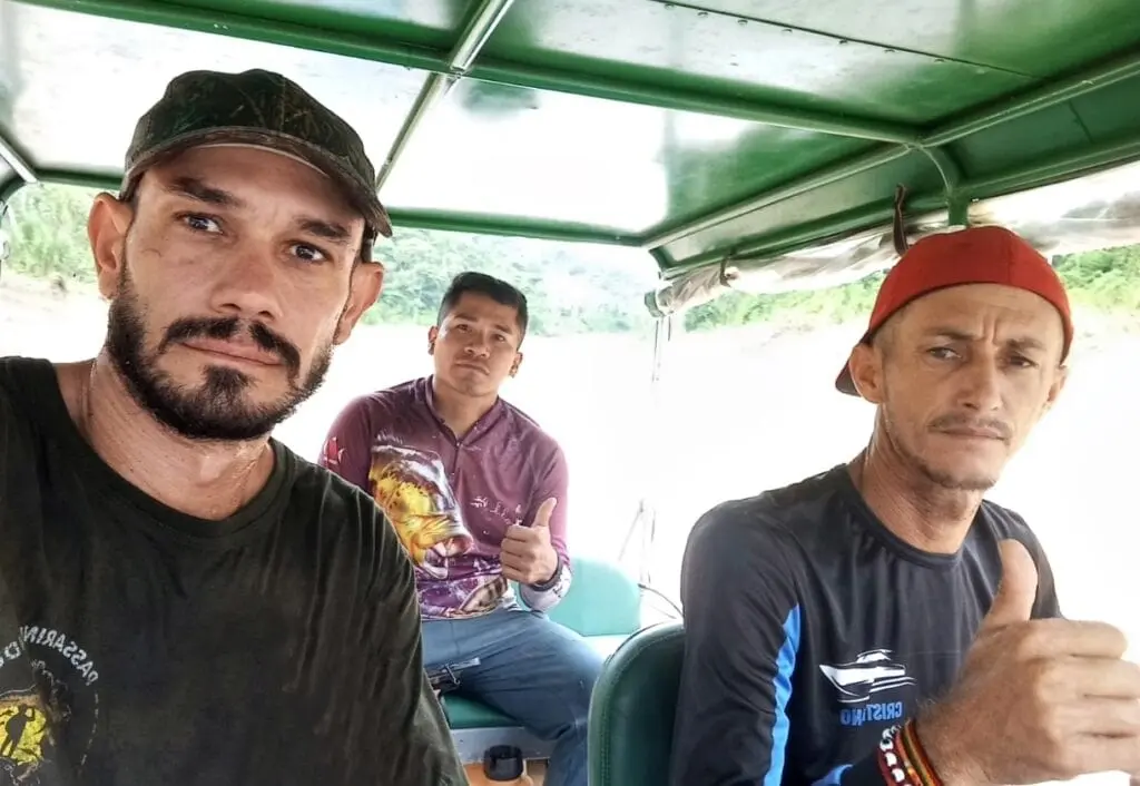 Ribeirinhos Pedro Vasquez e Cristiano Valente auxiliaram Ricardo na descoberta. Foto: Ricardo Plácido/Sema
