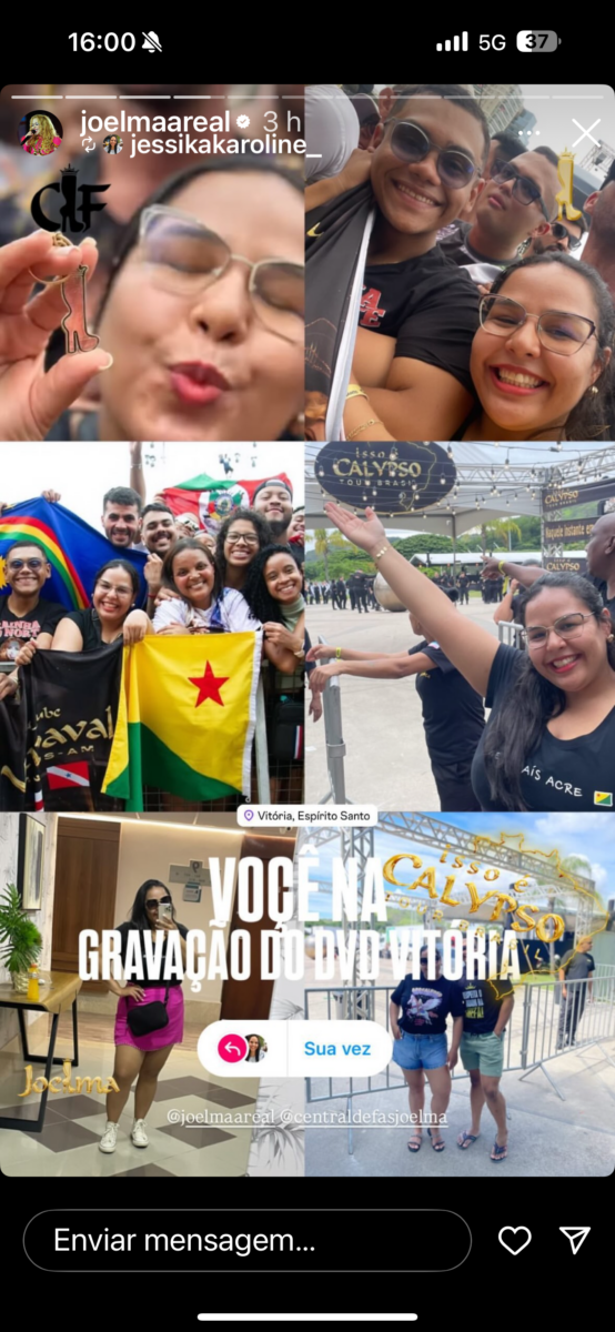 “Participar dessa gravação foi um sonho realizado para todos nós do Acre. Ver a Joelma de perto, representando tanto carinho e energia, é algo que emociona. A equipe dela nos recebeu com muito respeito, e saber que nossa presença foi notada só mostra o quanto ela valoriza cada fã. Esse momento vai ficar marcado para sempre nas nossas vidas!”.