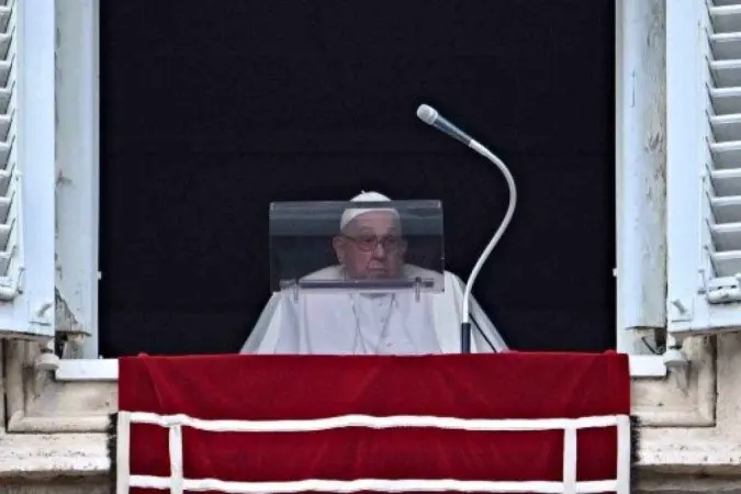 O Papa Francisco chega à janela do Palácio Apostólico com vista para a Praça de São Pedro durante a oração do Angelus da Epifania, no Vaticano, em 6 de janeiro de 2025/Foto: Andreas SOLARO / AFP