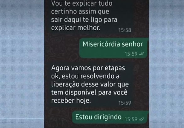 “A pessoa que estava aplicando o golpe encaminhou para ele uma mensagem com o número do processo, a petição inicial com os pedidos que a gente formulou. Passou informando que a gente tinha vencido o processo, que já tinha sido feito o bloqueio e que ia liberar”, disse a advogada.