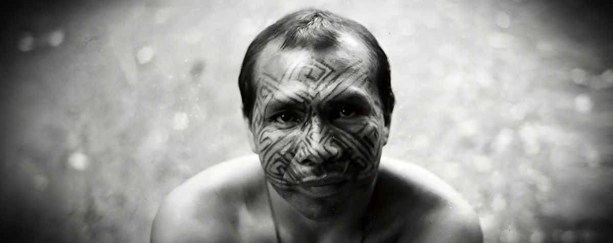 Indígena da etnia Huni Kuĩ com grafismo Kene Kuĩ (Reprodução/Aitor Salsamendi)