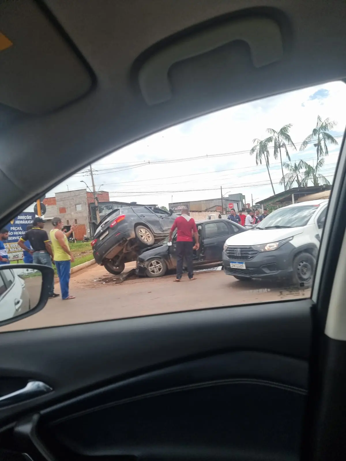 Populares que passavam pelo local registraram a curiosa cena, na qual um dos veículos estava sobre o outro.
