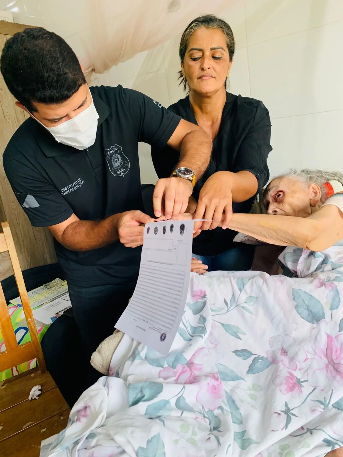 Equipe do Instituto de Identificação atendeu dona Maria de Nazaré, garantindo acesso à nova Carteira de Identidade Nacional (CIN) sem que ela precisasse se deslocar